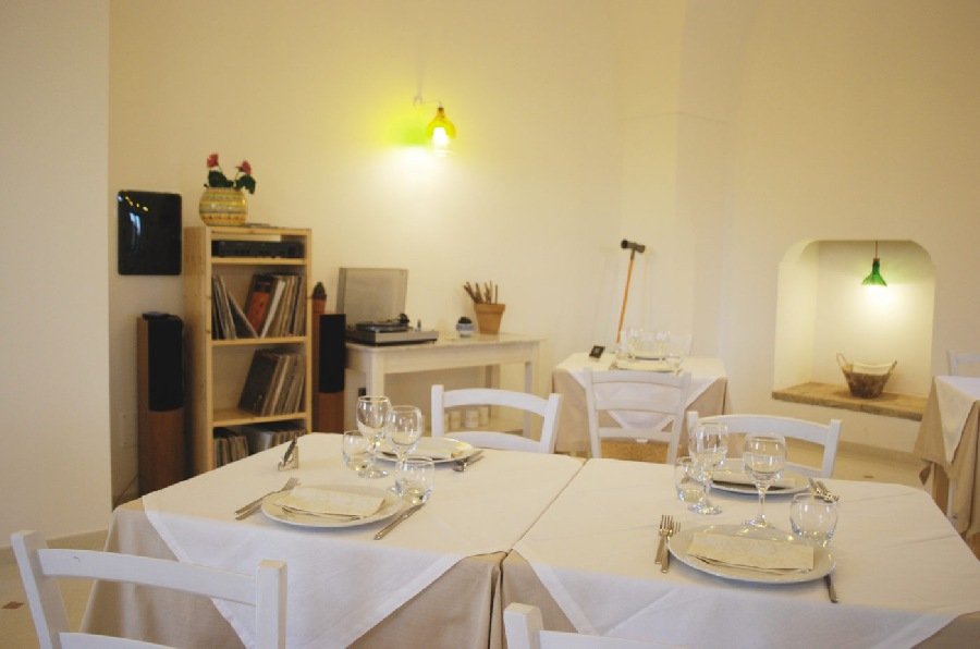 Per cena, gli ospiti potranno richiedere di accedere al ristorante annesso alle Masseria e degustare un menù di prelibatezze tipiche e km0. Il ristorante è aperto qualche giorno a settimana nei mesi marzo, aprile, maggio e dalla seconda metà di settembre fino a fine ottobre; Giugno e luglio e prima metà di settembre aperto tutte le sere con un solo giorno di chiusura, mentre nel mese di agosto è aperto tutte le sere.