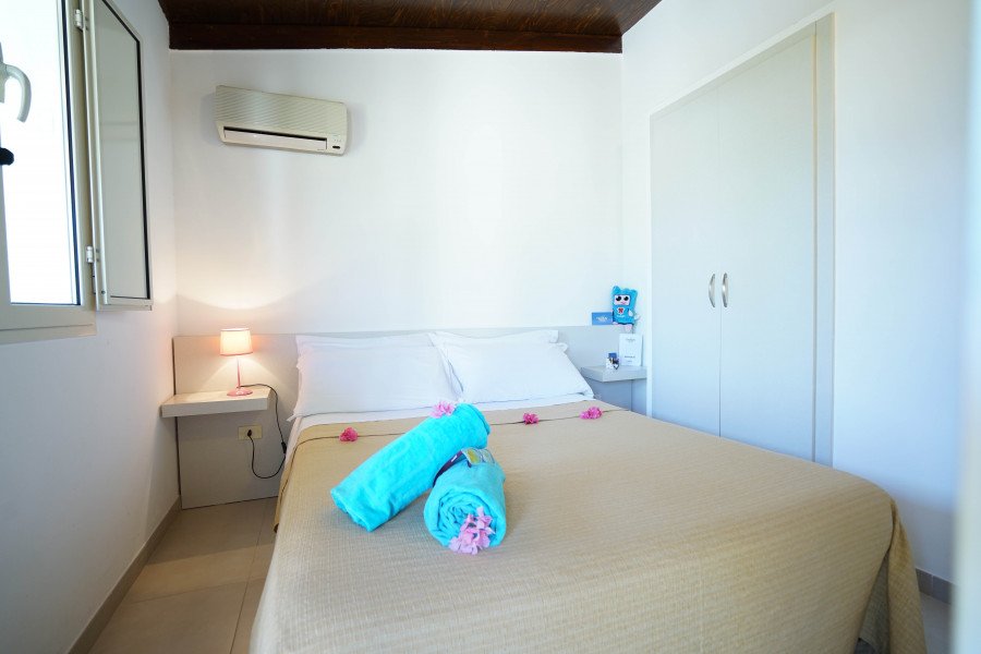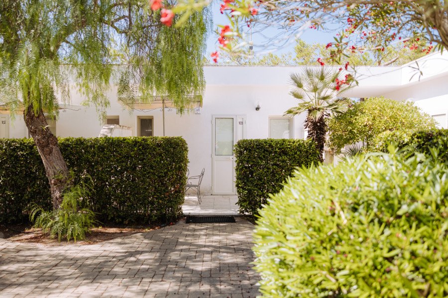 Le Camere: 40 camere in formula hotel, tutte al piano terra, dotate di servizi con doccia e sciugacapelli, Tv, aria condizionata autonoma, minifrigo e veranda attrezzata. Si siddividono in: Classic di dimensioni contenute, fino a 3 posti letto situate bella zona centrale del villaggio; Family ( 22 mq), da 2 a 4 posti letto, composte da soggiorno con divano letto doppio estraibile o a castello e camera matrimoniale, split aria condizionata in camera, TV in soggiorno. 48 appartamenti in formula residence, tutti al piano terra e dotati di ingresso indipendente, aria condizionata autonoma, veranda esterna, piccolo giardino, angolo cottura e servizi con doccia.