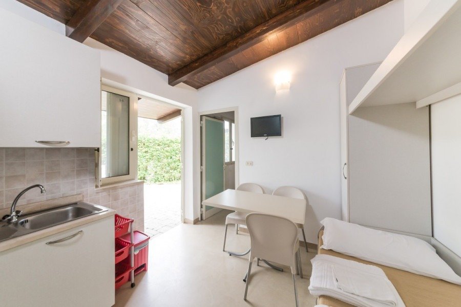Sono disponibili nelle seguenti tipologie: Bilocali , appartamenti da 2 a 4 posti letto, composti da camera matrimoniale, soggiorno con angolo cottura attrezzato e due posti in divano letto estraibile o letto a castello, ampia veranda e angolo cottura esterno; Trilocali, appartamenti da 5 a 6 posti letto, composti da soggiorno con divano letto doppio estraibile, 2 camere matrimoniali, apia veranda e angolo cottura esterno.