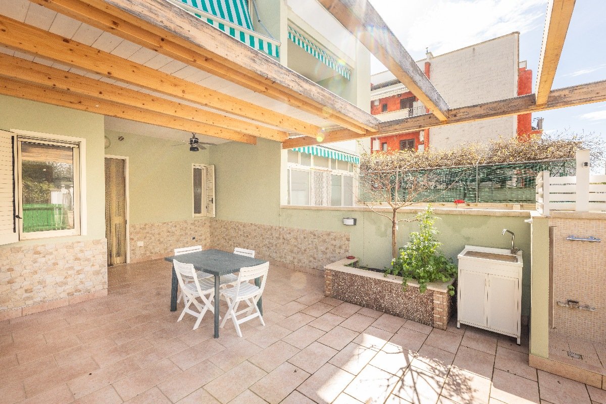 Appartamento Bilocale con giardinetto attrezzato, composto da soggiorno con angolo cottura e divano letto, camera con letto matrimoniale e un bagno. All'interno di un Residence posizionato a 50 metri dal Supermercato Eurospin e 150 dalle spiagge e lungomare inizio della passeggiata.