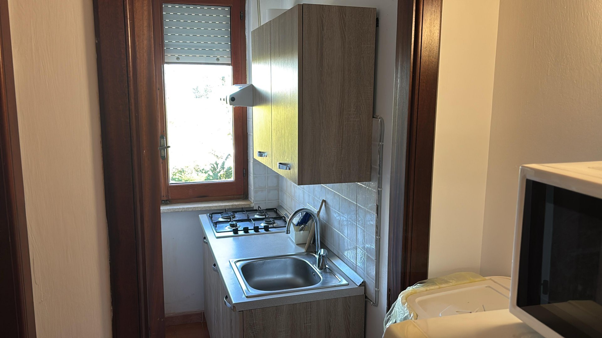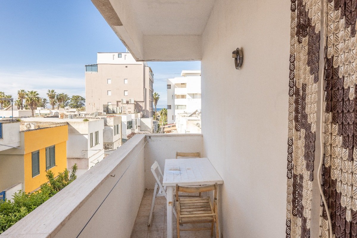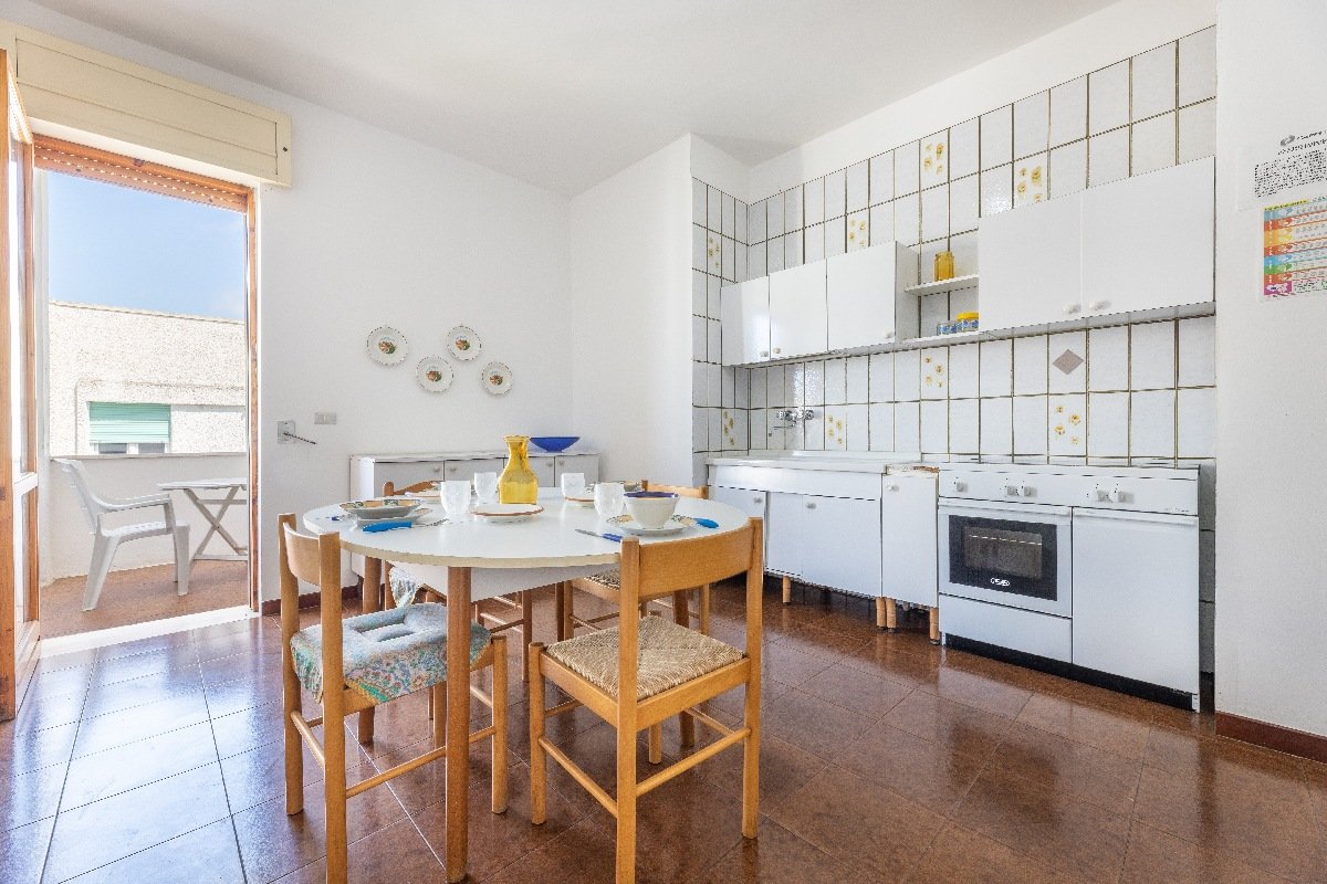 Appartamento Bilocale con balcone attrezzato, composto da soggiorno con angolo cottura e divano letto, camera con letto matrimoniale e un bagno. Fa parte di un Residence posizionato a 50 metri dal Supermercato Eurospin e 150 dalle spiagge e lungomare inizio della passeggiata.