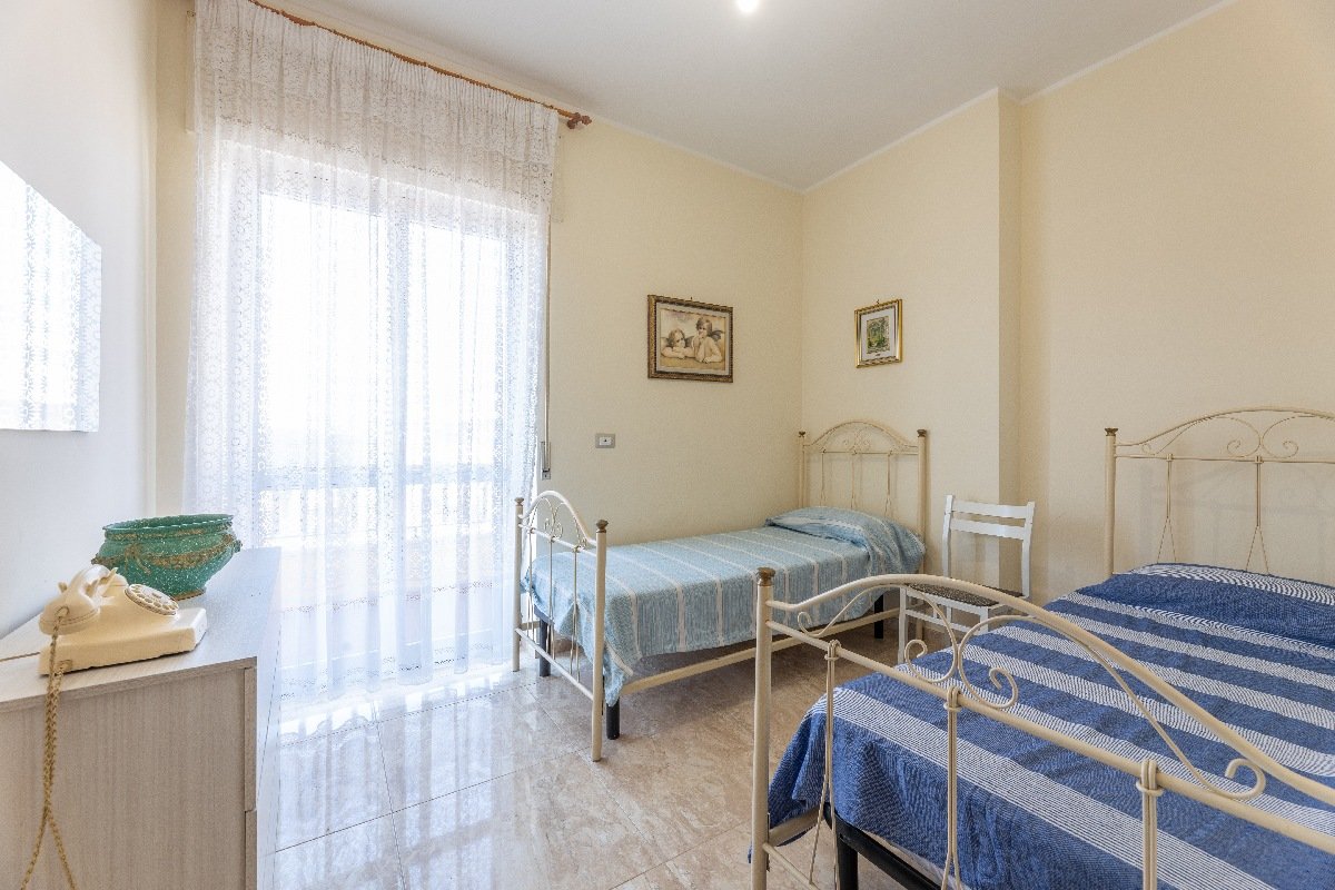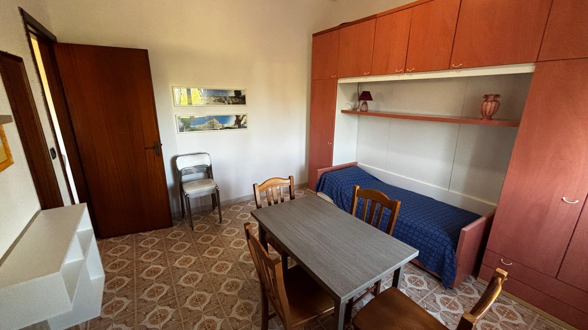 Appartamento composto da soggiorno con angolo cottura e divano letto, camera con letto matrimoniale e un bagno. All'interno di un Residence posizionato a 50 metri dal Supermercato Eurospin e 150 dalle spiagge e lungomare inizio della passeggiata.