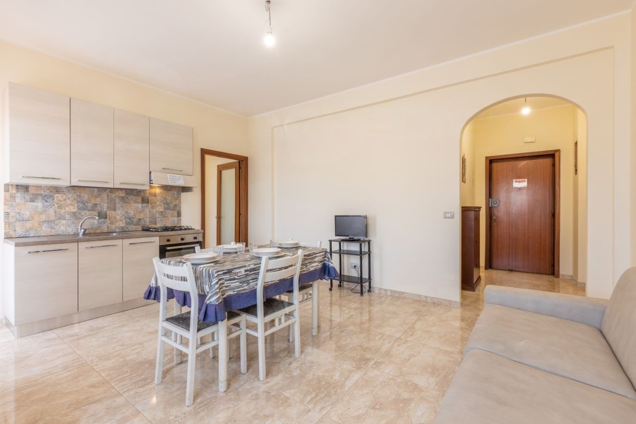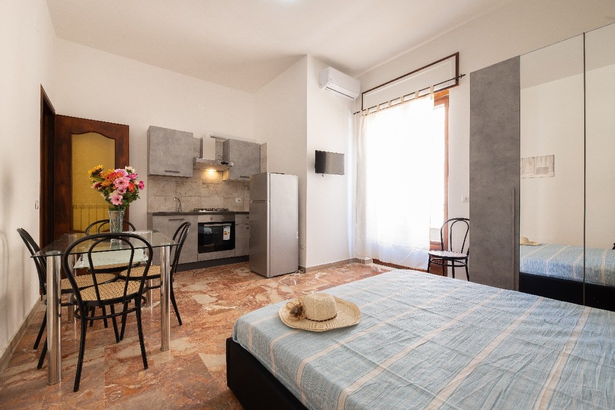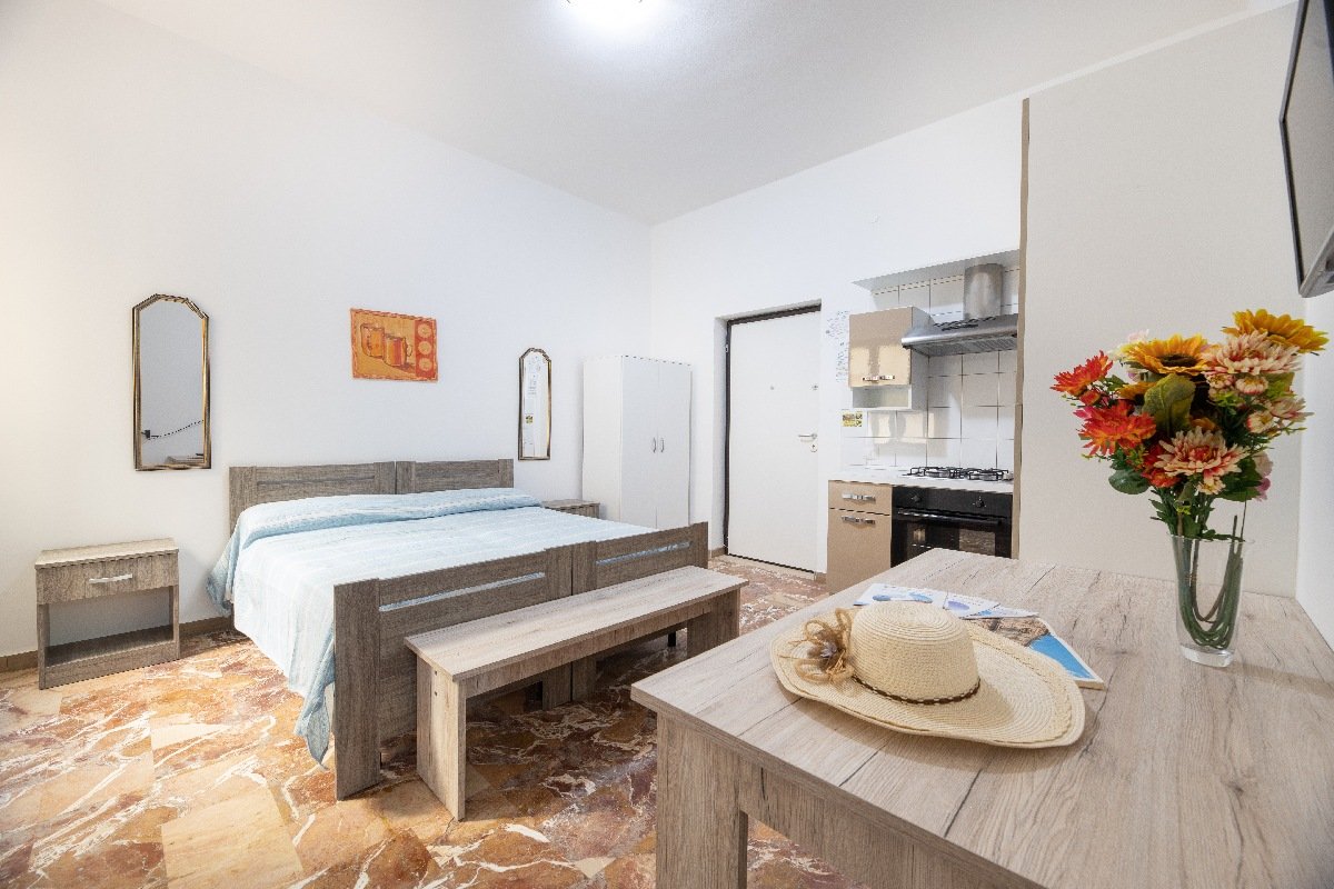 Elegante e moderno appartamento totalmente indipendente, situato al secondo piano dell'edificio e servito da ascensore, si compone di tutto il necessario per la Vostra vacanza da sogno: cucina attrezzata con forno, spazioso bagno con doccia, ingresso e soggiorno con divano letto matrimoniale, una ca era matrimoniale ed una camera singola, balconcino con vista mare. Completano i comfort a corredo dell'appartamento: rete internet wifi, cassaforte, mini frigo, kit di cortesia, asciugamani e lenzuola, televisore con digitale terrestre, aria condizionata, riassetto giornaliero e reception diurna, zona lavanderia ad uso comune, oltre all'accesso esclusivo per i soli ospiti del residence ad una piscina con patio situata all'ultimo piano che consente vista parziale sul mare e sulla città. E' assicurata la pulizia giornaliera di tutti gli spazi comuni: ascensore, ingresso, reception, scale. Leggi tutto »
