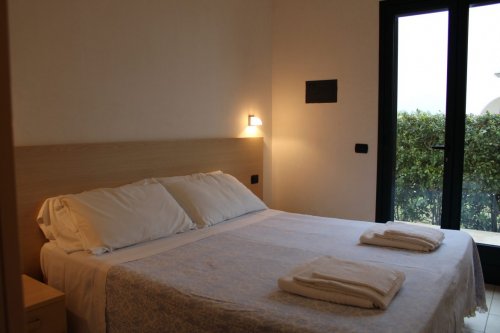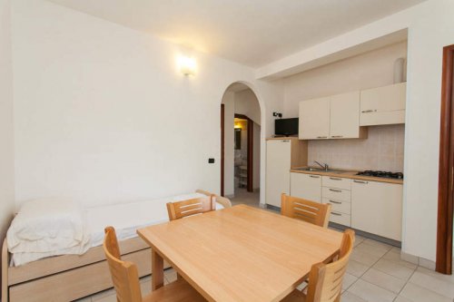 Appartamento al piano terra sono composte da una camera da letto, un soggiorno con angolo cottura e due letti singoli e possibilità di 5° letto aggiunto, veranda attrezzata e giardino privato.
