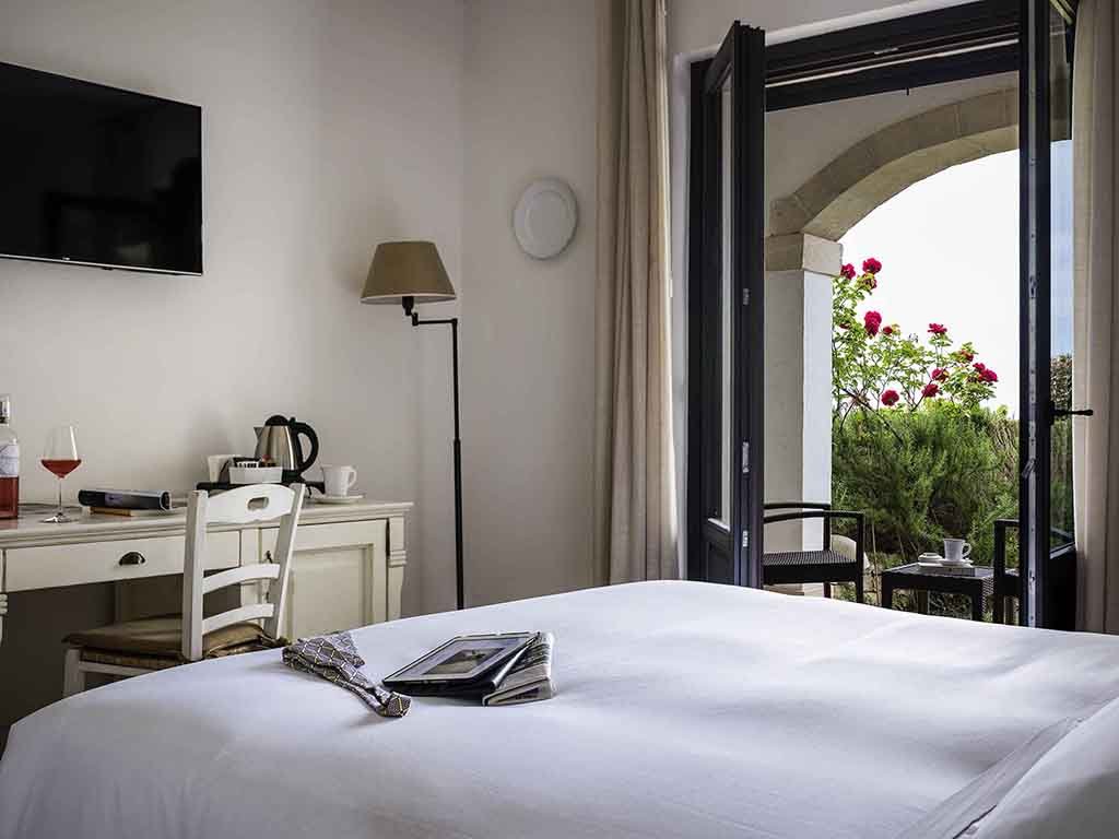 Le camere Deluxe sono arredate seguendo il gusto e lo stile pugliese. Ogni stanza è arricchita da un terrazzino o patio con vista sulla campagna circostante o sul Mar Adriatico.