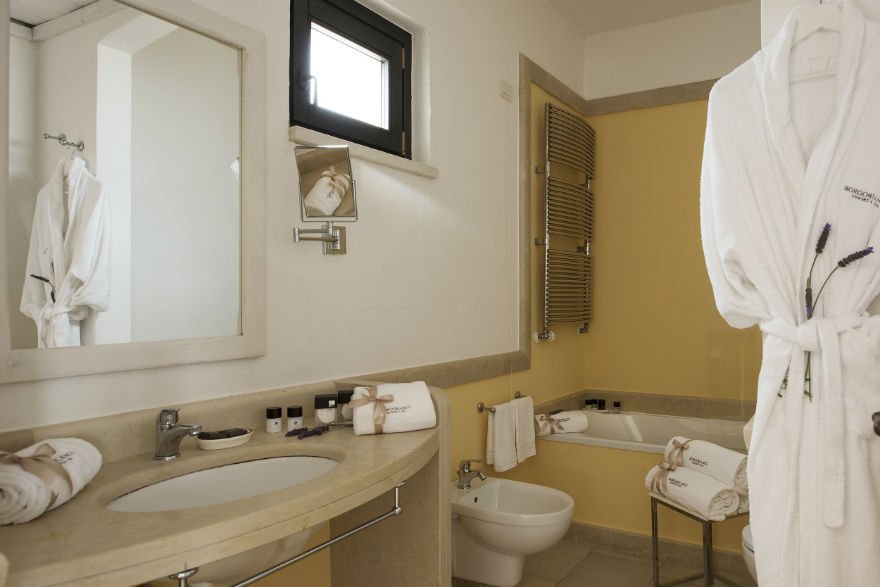 Le 48 camere, di cui 27 Suite, artigianalmente arredate con toni bianchi e crema regalano un’atmosfera pacifica e rappresentano una favolosa convergenza tra modernità e la calda accoglienza tipica delle case di campagna. I meravigliosi pavimenti in pietra vi guideranno all’elegante bagno privato dal vostro morbido letto. Affacciatevi al vostro balcone privato e godetevi il sole che sorge sul mare, o i colori di tramonti mozzafiato. Con i comfort, i servizi unici e lo splendido mare di Polignano a pochi passi, potrete immergervi nella completa serenità e comodità presso Borgobianco Resort & Spa.