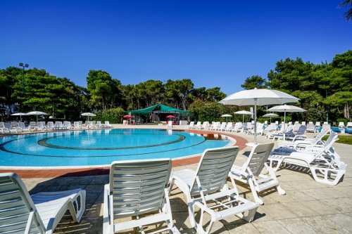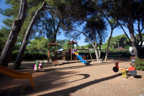 Centro sportivo: Un'ampia area polifunzionale dedicata alle attività sportive, situata al centro del villaggio, circondata da una lussureggiante vegetazione composta da pini marittimi, palme e oleandri. e' dotata di ampi spazi in cui sono collocati un american bar ( di gestione esterna), due piscine semi-olimpioniche, una piscina dedicata esclusivamente ai bambini on profondità di 50 cm, due campi da tennis, un campo da calcetto, area riservata ai bambini con parco giochi e teatro per gli spettacoli dell'animazione.