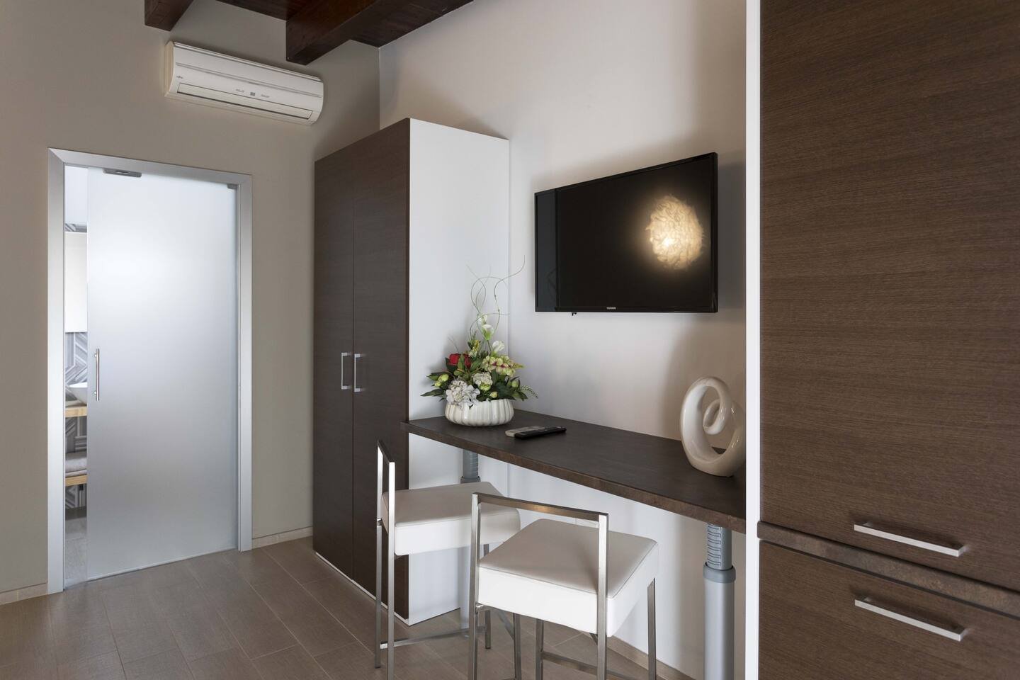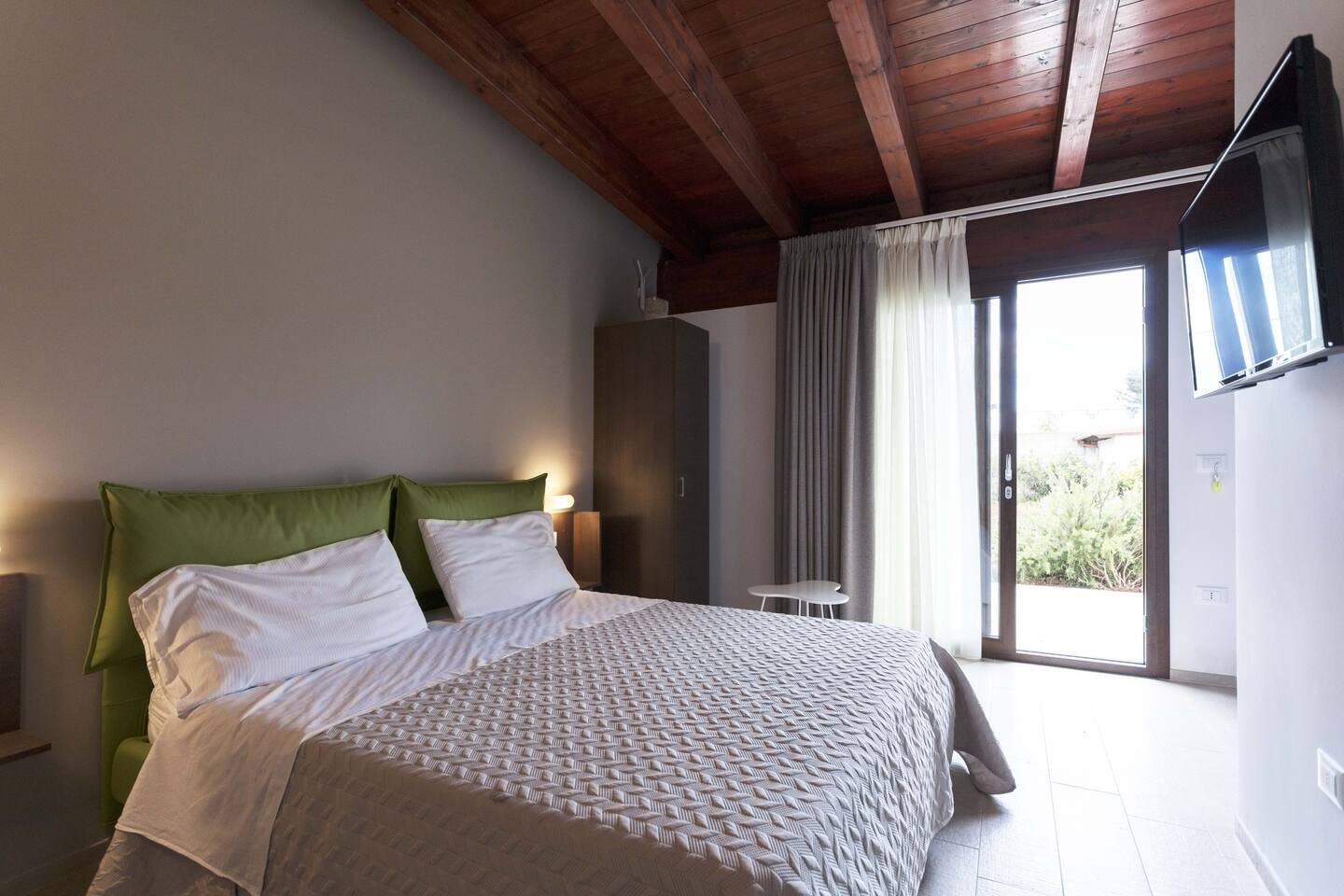 Il bilo a piano terra dispone di spazio esterno, camera matrimoniale, cucina accessoriata, bagno, soggiorno con divano o poltrona letto. Tutti gli appartamenti sono climatizzati.
