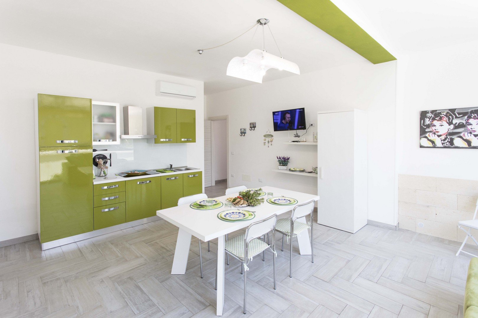 L’appartamento Ulivo (Max 5 Pax) è situato al piano terra ed è composto da una camera da letto matrimoniale, un ampio soggiorno con divano letto matrimoniale, una cucina a induzione e bagno privato. Possibilità di aggiunta di un lettino all’interno della camera. I nostri ambienti sono tutti climatiz imatizzati e offrono un piacevole comfort ai nostri ospiti. Questo appartamento dispone di un piccolo giardino privato e posto auto. Leggi tutto »