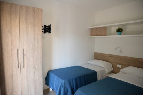 Camera quadrupla in stile mediterraneo con letto a castello ( letti bassi su richiesta e previa disponibilità), dispongono di servizi con asciugacapelli, telefono, aria condizionata, minifrigo, televisore, patio se al piano terra, terrazzino se al primo piano, bagno con box doccia rinnovato in tutte le camere. Leggi tutto »