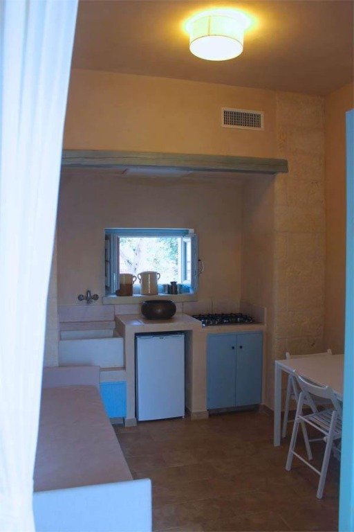 La Junior Suite (32 mq), ricavata da una vecchia casa colonica, è arredata completamente in pietra in stile contemporaneo, è indipendente dalla corpo principale della masseria ed è composto da camera dal letto matrimoniale e zona living con annessa cucina. E’ dotato di ogni confort: aria condiziona ionata canalizzata, minibar, cassaforte digitale, tv a schermo piatto, connessione wireless gratuita e linea cortesia a l’olio d’oliva con olii e creme per il corpo. Occupazione: 2 persone in letto matrimoniale con possibilità di aggiungere una o due culle e nella zona living uno o due letti standard a castello (zona living con angolo cottura). Leggi tutto »