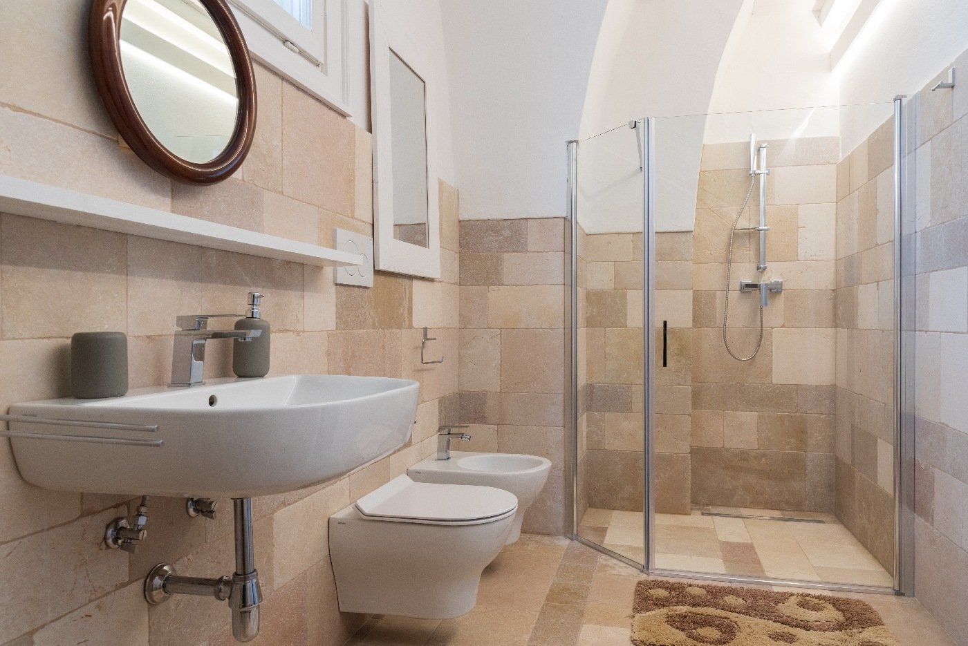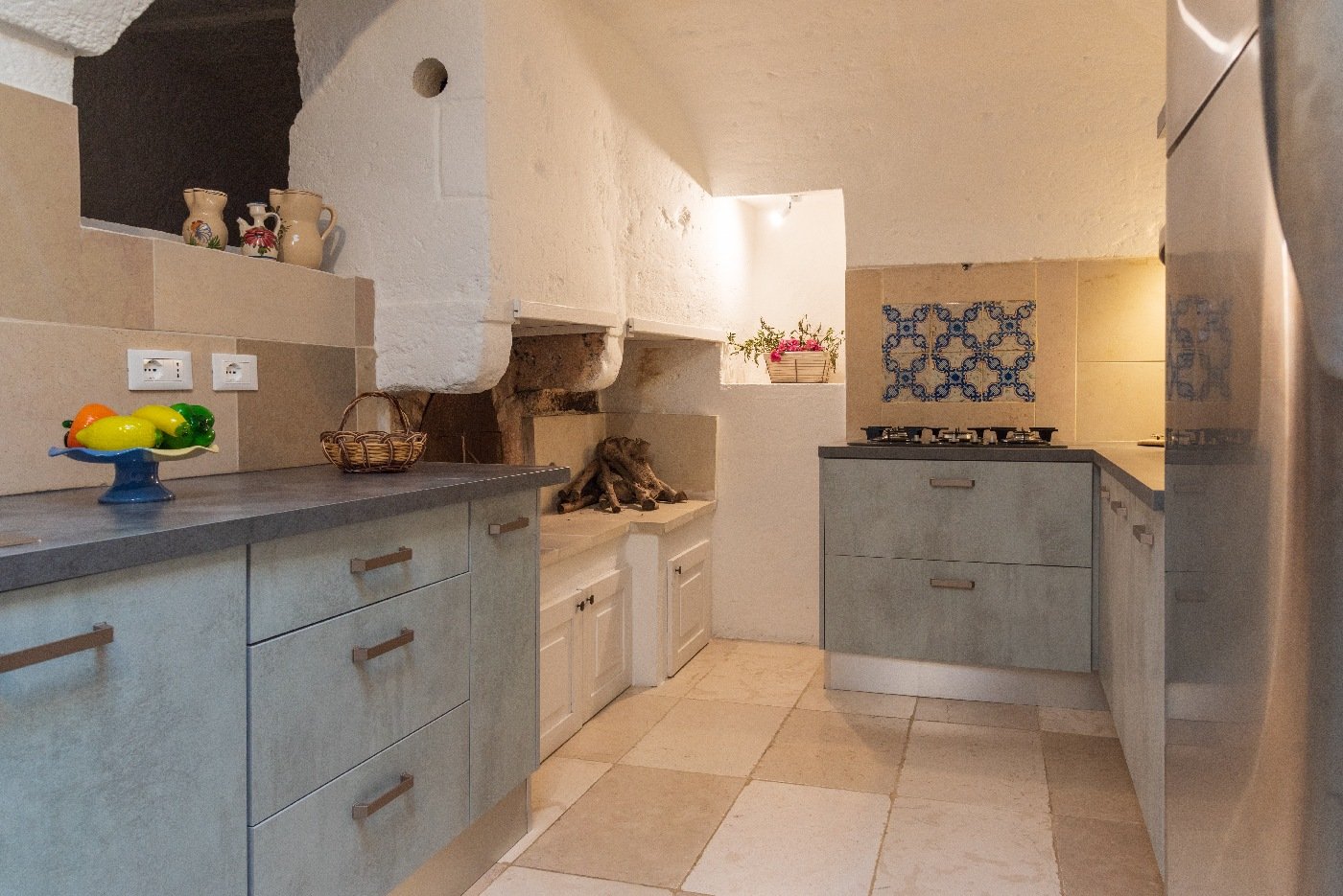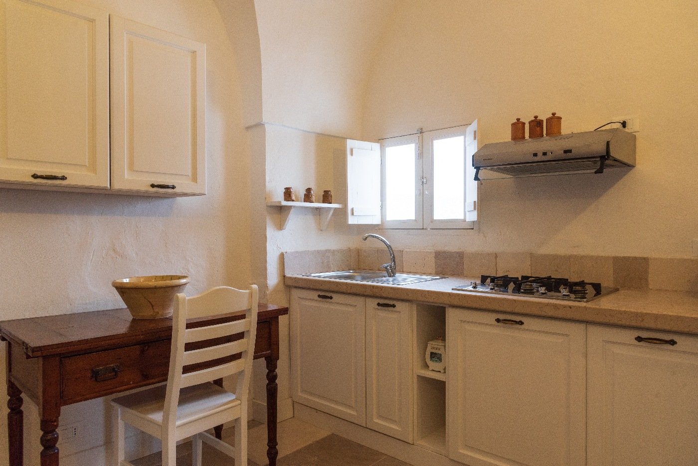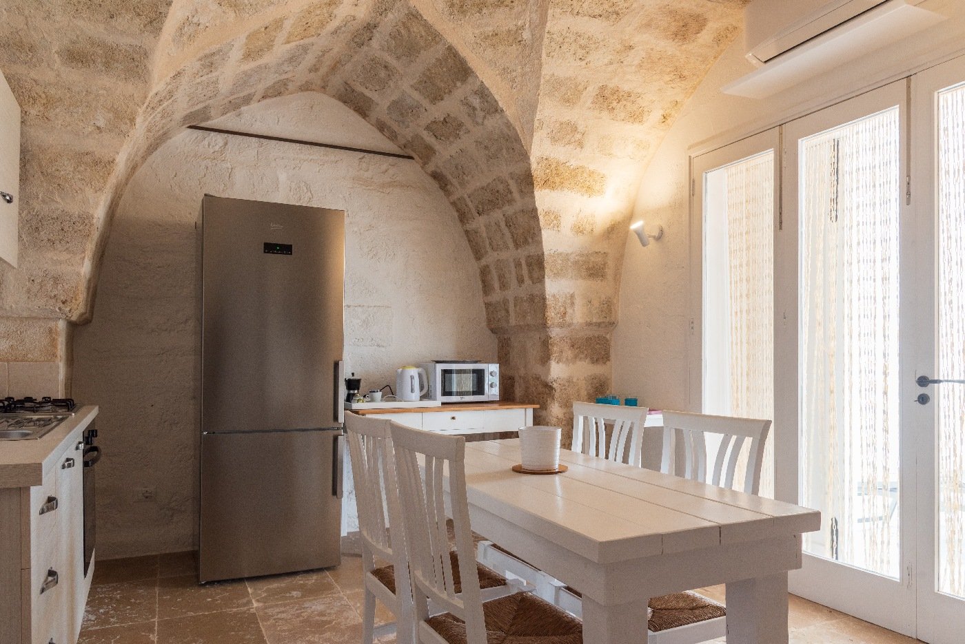 La struttura è caratterizzata da doppie volte in tufo, pavimenti in pietra originale dell’epoca, muri spessi fino a un metro, tipico delle abitazioni delle masserie salentine.