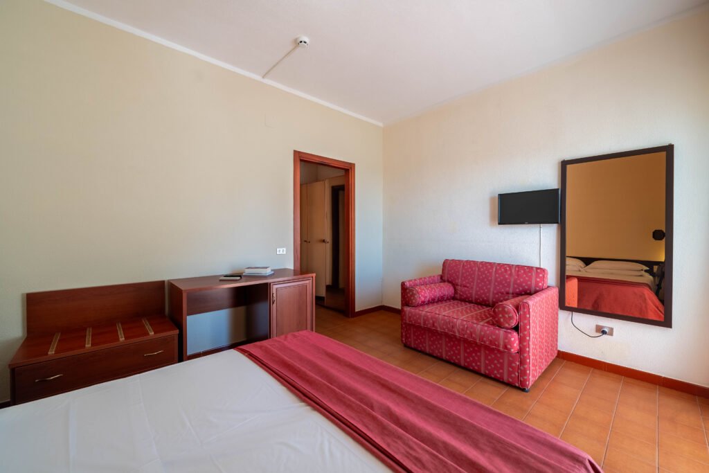 Camere situate nel corpo centra del villaggio. Composto da un letto matrimoniale e letto a castello, frigo-bar vuoto a disposizione con riempimento su richiesta a pagamento, aria condizionata, bagno con doccia esciugacapelli a muro, tv a schermo piatto, balcone.