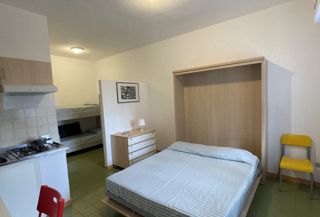 Villetta spaziosa con entrata indipendente e con giardino privato, immerso completamente nella pineta. E' dotato di angolo cottura, set di stoviglie, bicchieri e posate, frigorifero con congelatore, tv, aria condizionata e non prevede la moka per il caffè. Bagno con box doccia. Unico ambiente con p iccolo tramezzo alle spalle del quale si trova il 3°/4° letto a castello e che consente la privacy. Letto matrimoniale a scomparsa. Questo appartamento è ideale per le famiglie composte fino a un massimo di 4 persone. Leggi tutto »