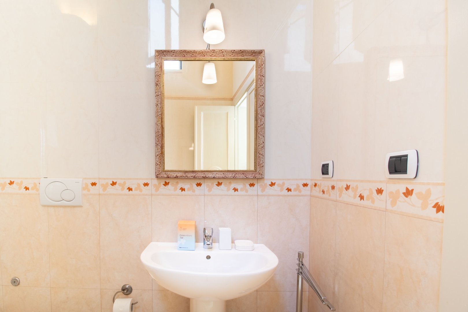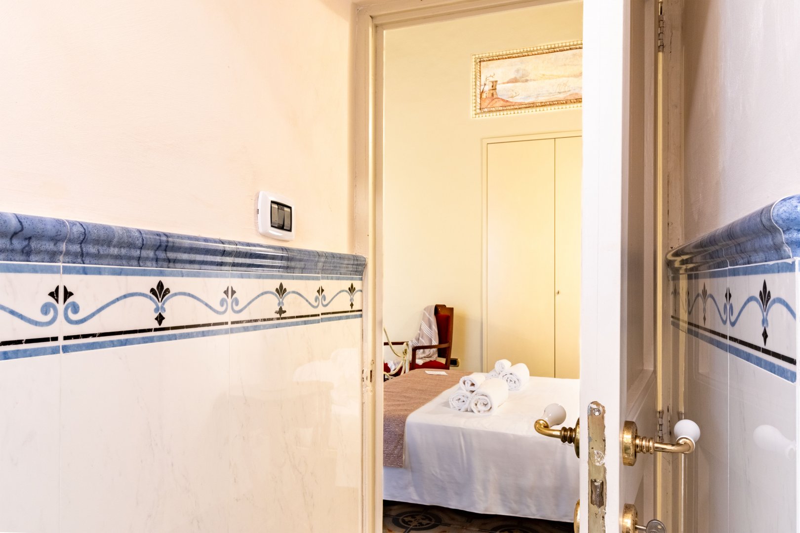 Sin dal vostro ingresso, non potrete far a meno di ammirare la raffinatezza degli arredi in stile liberty, che combinano a materiali quali il legno e il ferro battuto le loro linee sinuose ma essenziali. A meravigliare lo sguardo sono anche gli antichi pavimenti con le loro geometrie dalle tinte tenui e polverose, che accompagnano il passo alla scoperta dei due ambienti che compongono la camera, il primo con letto matrimoniale e il secondo pensato per un terzo ospite. L’affaccio sul giardino interno garantisce agli spazi una luce piena e ristoratrice.