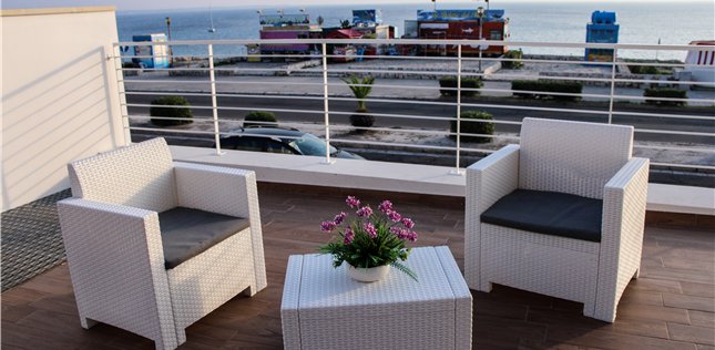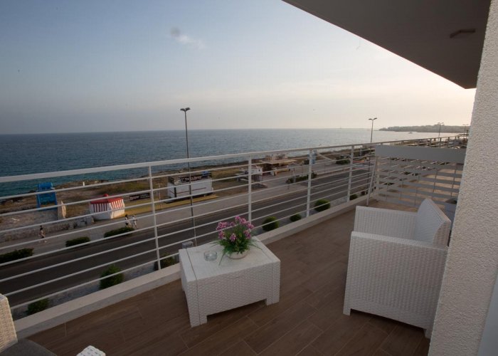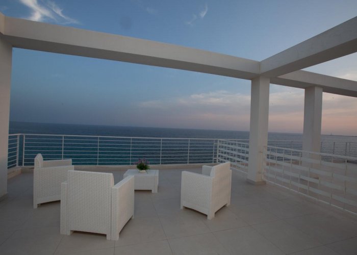 Camera Deluxe con terrazzo fronte mare , situata all’ultimo piano della nostra struttura. L’alloggio è composto da bagno, camera e terrazzo. La camera offre il solo pernottamento e comprende: riassetto a giorni alterni con cambio biancheria da bagno, Tv, Wi-fi in camera, frigo bar (vuoto), bagno com completo con fornitura di sapone mani, schiuma doccia e capelli, phon. Leggi tutto »