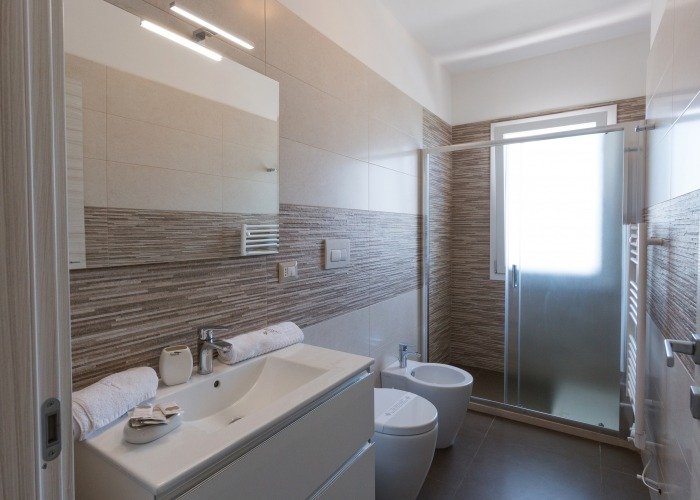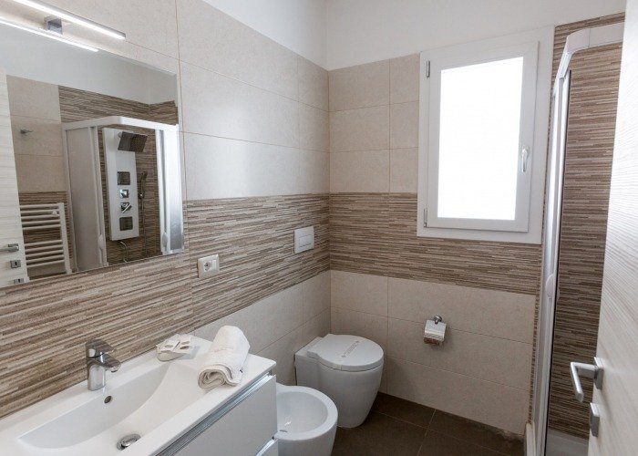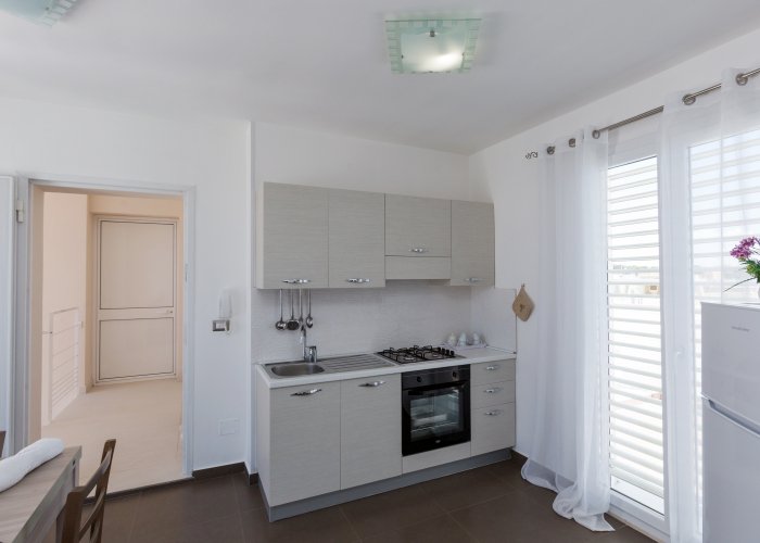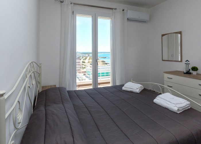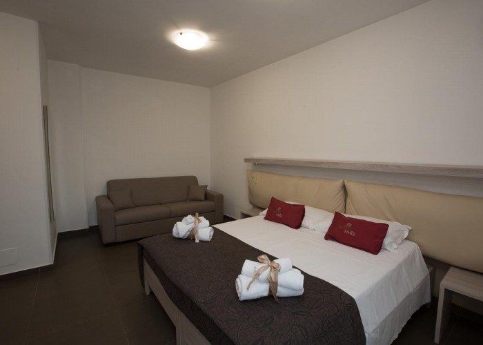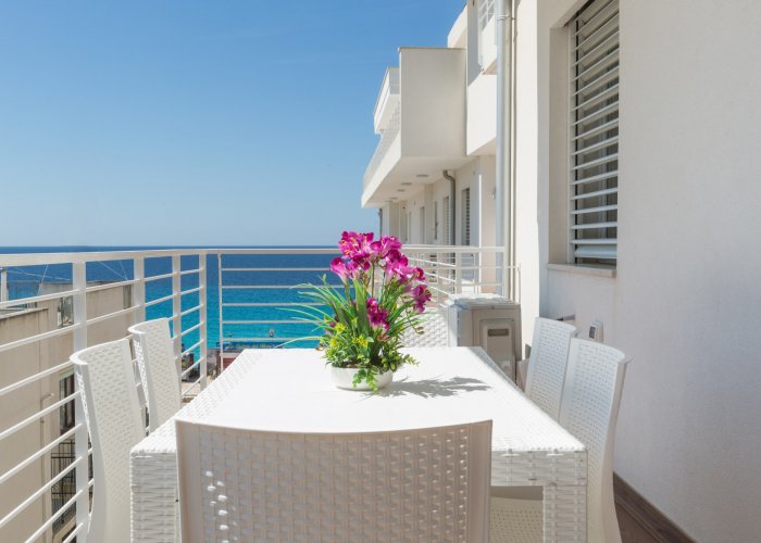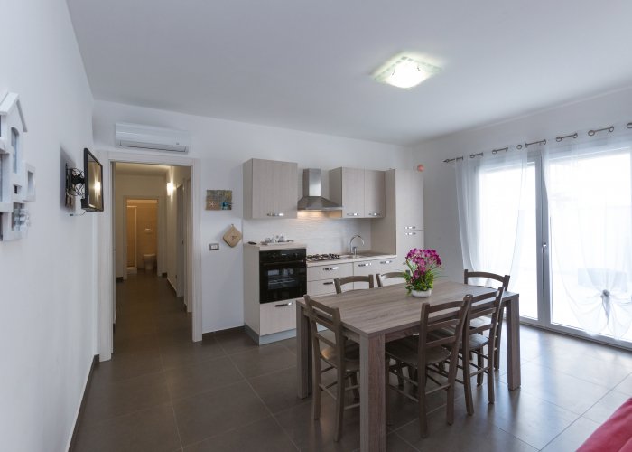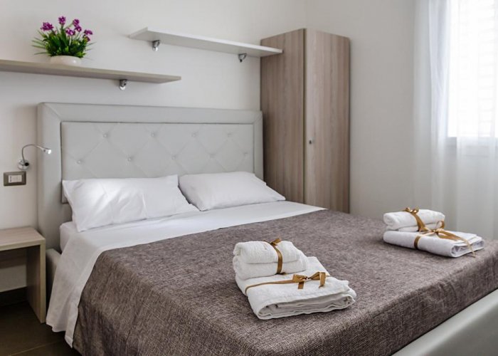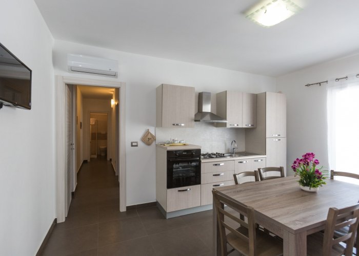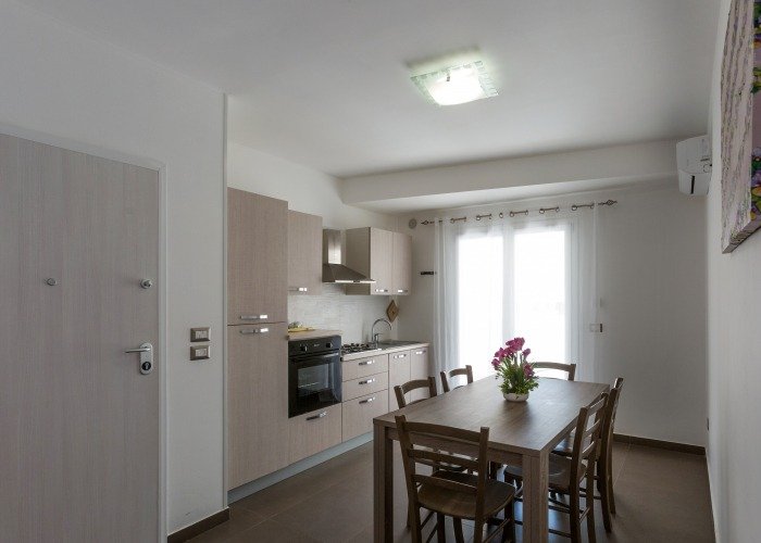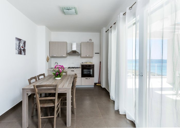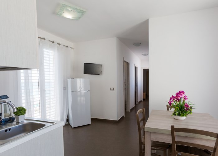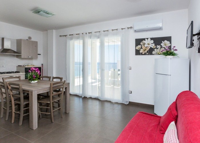 Appartamenti family nel Residence, ai PIANI SUPERIORI: al secondo e terzo piano con balcone privato vista mare laterale. Gli appartamenti comprendono due camere da letto, un soggiorno, una TV a schermo piatto, una cucina attrezzata con zona pranzo, bagno completo. Per una maggiore comodità, la strut tura fornisce la prima fornitura di asciugamani e lenzuola inclusi. Leggi tutto »
