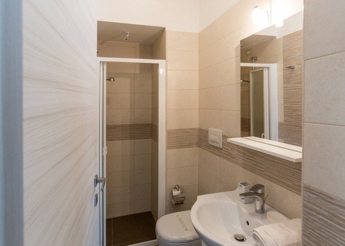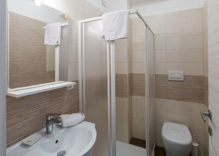 Camera Economy con finestra e bagno privato completo. La camera offre il solo pernottamento e comprende: riassetto a giorni alterni con cambio biancheria da bagno, Tv, Wi-fi in camera, frigo bar (vuoto), bagno completo con fornitura di sapone mani, schiuma doccia e capelli, phon vuoto), bagno completo con fornitura di sapone mani, schiuma doccia e capelli, phon