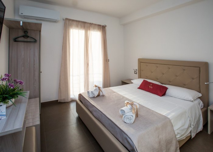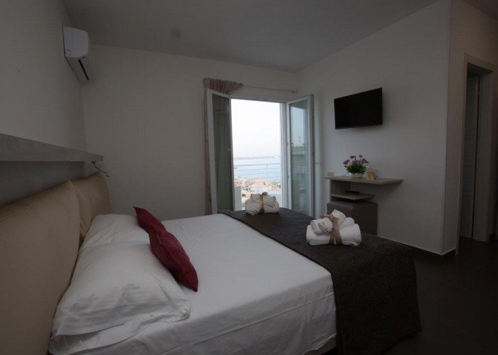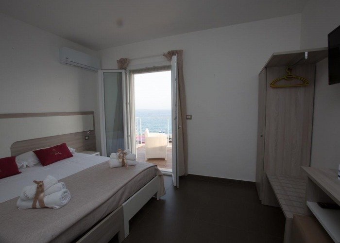 Camera Deluxe con Vista Mare, situata all’ultimo piano della nostra struttura. L’alloggio è composto da bagno, balcone di piccole dimensioni, vista mare. La camera offre il solo pernottamento e comprende: riassetto a giorni alterni con cambio biancheria da bagno, Tv, Wi-fi in camera, frigo bar (vuot vuoto), bagno completo con fornitura di sapone mani, schiuma doccia e capelli, phon. Leggi tutto »