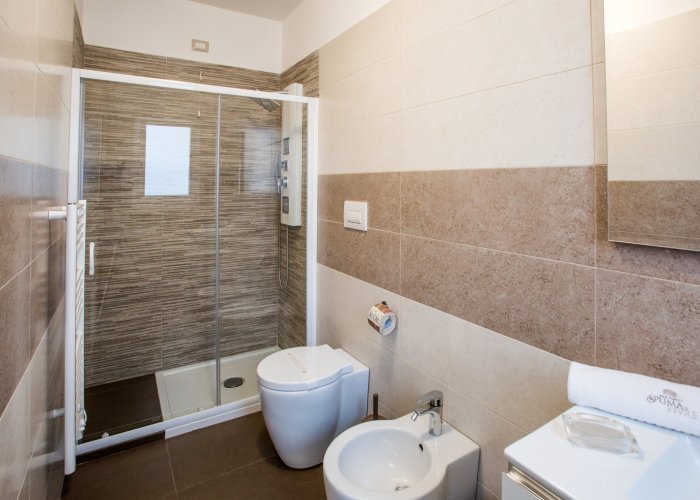Appartamenti family ai PIANI INFERIORI del Residence: al piano terra, con terrazza, e primo piano con balcone, vista mare laterale parziale. Gli appartamenti comprendono due camere da letto, un soggiorno, una TV a schermo piatto, una cucina attrezzata con zona pranzo, bagno completo. Per una maggio e comodità, la struttura fornisce la prima fornitura di asciugamani e lenzuola inclusi. Leggi tutto »