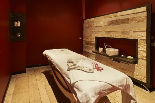 Centro Benessere: si estende su 700 mq e dispone di un’accogliente reception, di cinque suggestive cabine massaggi di cui una per massaggi di coppia, di una cabina per trattamenti estetici, di una parruccheria, di una sala fitness attrezzata con tapis-roulant, cyclettes e pesi, di una zona acque con piscina riscaldata con idromassaggio ad ossigeno, getti d’acqua e cascata cervicale, percorso Kneipp, percorso vascolare, docce emozionali, sauna, bagno turco, doccia scozzese e zona relax con tisaneria. Nel Centro Benessere si effettuano massaggi rilassanti, estetici e trattamenti viso e corpo.