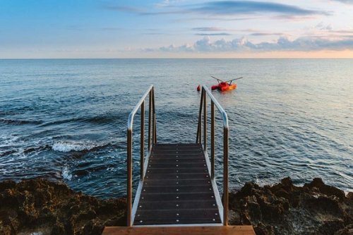 - Doppia piscina panoramica: una con acqua dolce, una con acqua di mare, per un totale di 1.500 mq