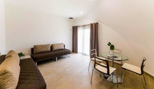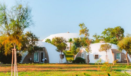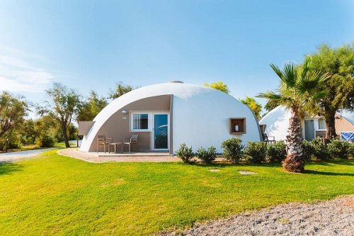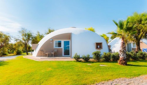 Grandi e rilassanti suite di circa 45 mq, dalla caratteristica forma a cupola, dispongoo di area living attrezzata con divani letto e camera da letto, con vista sul mare o sulla piscina. Adatte a nuclei familiari fino a 4 persone, includono tutti i servizi del pacchetto Premium.