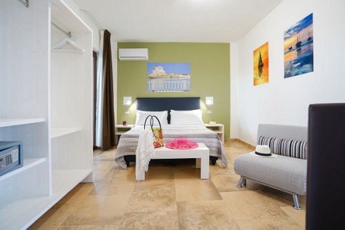 Camere con doppio ambiente e doppio bagno, sono riservate a nuclei familiari con almeno quattro ospiti paganti. Le camere sono tutte dotate di bagno privato con doccia, asciugacapelli , aria condizionata, frigobar, TV LCD, telefono, cassetta di sicurezza.