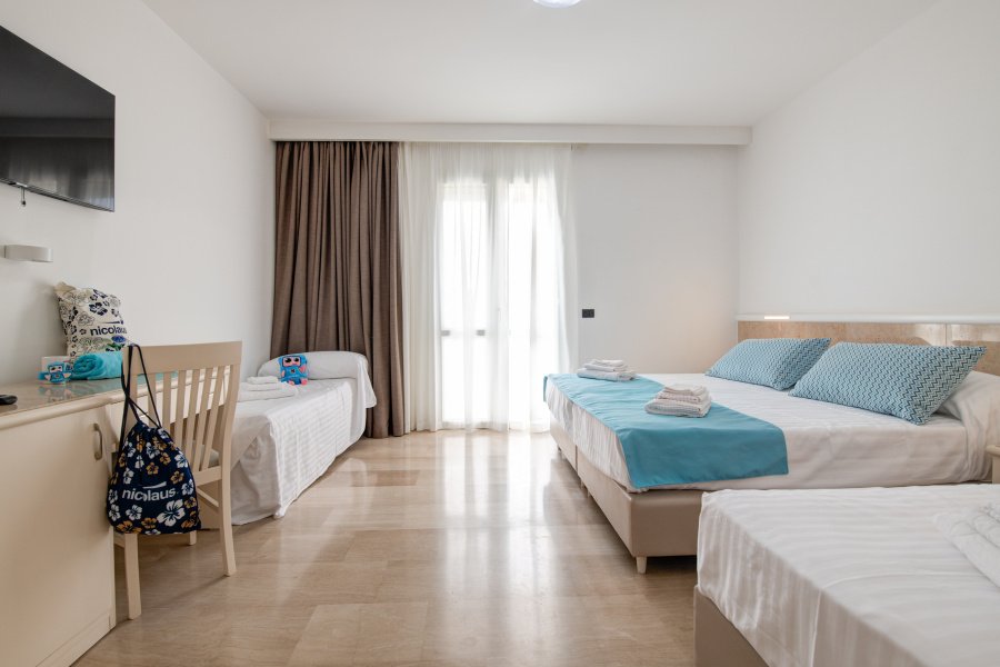 Le camere classic fino a 4 posti letto, composte da un letto matrimoniale e 3° e 4° letto singolo. Possibilità di camere vista piscina (con supplemento).