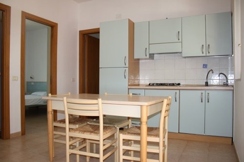 La struttura è composta da: Villino bilocale da 2 a 4 posti letto in muratura: appartamento a schiera, composto da soggiorno con angolo cottura e doppio divano letto estraibile, camera matrimoniale, servizi igienici con