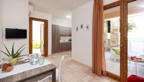 Le Camere Comfort: si compongono in un unico ambiente con servizio da 2 a 3 posti letto con patio o terrazzino, al piano terra o al primo piano, tutte con vista piscina. Le Villas si compongono, invece di doppio e triplo ambiente con servizio da 2 a 6 posti letto.Tutti sono attrezzato e patio o giardino, fornitura settimanale della biancheria da letto e da bagno.