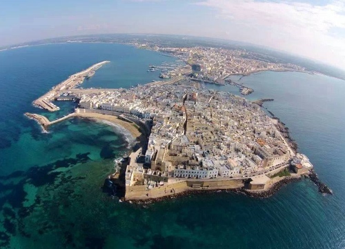 Gallipoli, posata sul mar Ionio, è denominata La Perla dello Ionio, poichè la città vecchia sorge su una piccola isola piena di vicoli e molte chiese, ed un ponte seicentesco la congiunge alla terra ferma e alla città nuova a forma di imbuto.
